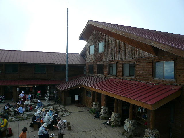 そこから1時間歩いて、年中無休の山小屋「西穂山荘」へ到着。この山小屋でかいです。
