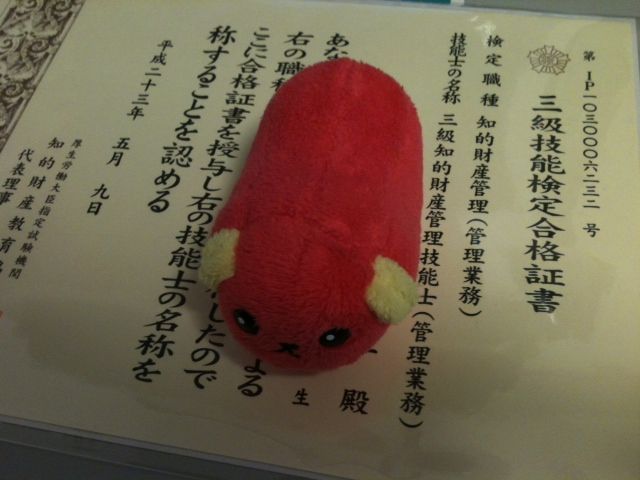 法律資格第一弾の「知的財産管理技能検定3級」に合格して証書が送られてきました~。